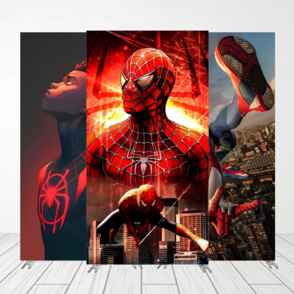 Os painéis estão disponíveis nos tamanhos 1X2M cm, ideais para festas grandes.Os painéis romanos contam com variados modelos temáticos de HOMEM ARANHA.