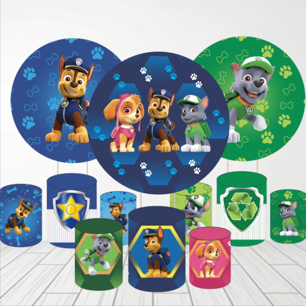 O Kit Festa PATRULHA CANINA é composto por 1 capa para painel redondo e 3 capas para cilindros, nos tamanhos P, M e G. Esse kit traz uma nova forma de decorar, tornando sua festa única, divertida e ainda mais bonita.