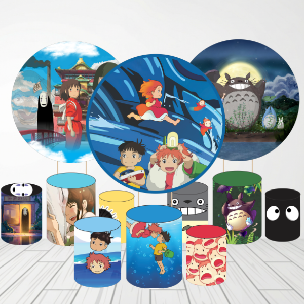 O Kit Festa STUDIO GHIBLI é composto por 1 capa para painel redondo e 3 capas para cilindros, nos tamanhos P, M e G. Esse kit traz uma nova forma de decorar, tornando sua festa única, divertida e ainda mais bonita.