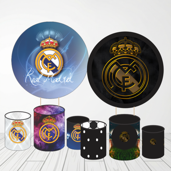 O Kit Festa REAL MADRID é composto por 1 capa para painel redondo e 3 capas para cilindros, nos tamanhos P, M e G. Esse kit traz uma nova forma de decorar, tornando sua festa única, divertida e ainda mais bonita.