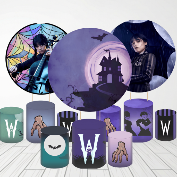 O Kit Festa WANDINHA é composto por 1 capa para painel redondo e 3 capas para cilindros, nos tamanhos P, M e G. Esse kit traz uma nova forma de decorar, tornando sua festa única, divertida e ainda mais bonita.