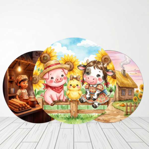 CAPA PAINEL REDONDO FESTA JUNINA | TECIDO PREMIUM | VÁRIOS MODELOS 1.50X1.50M E 50X50CM