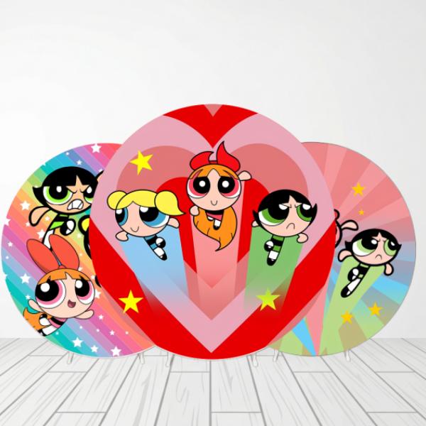CAPA PAINEL REDONDO MENINAS SUPER PODEROSAS | TECIDO PREMIUM | VÁRIOS MODELOS. 1.50X1.50CM E 50X50CM