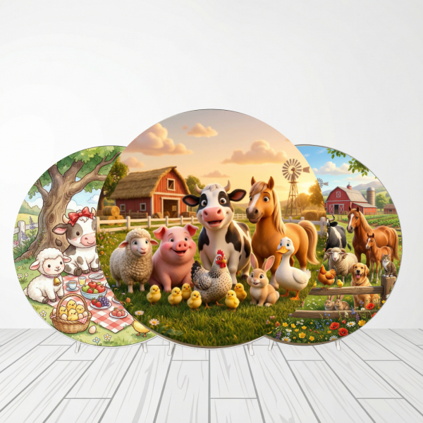 CAPA PAINEL REDONDO FAZENDINHA | TECIDO PREMIUM | VÁRIOS MODELOS - 1.50X1.50M E 50X50CM