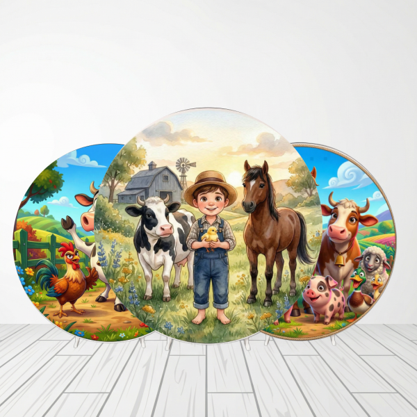 CAPA PAINEL REDONDO FAZENDINHA MENINO | TECIDO PREMIUM | VÁRIOS MODELOS. 1.50X1.50CM E 50X50CM
