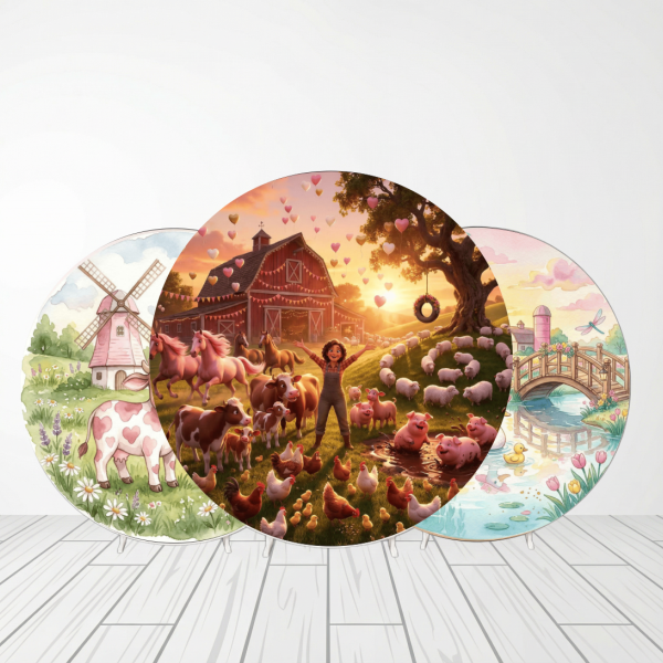 CAPA PAINEL REDONDO FAZENDINHA | TECIDO PREMIUM | VÁRIOS MODELOS - 1.50X1.50M E 50X50CM