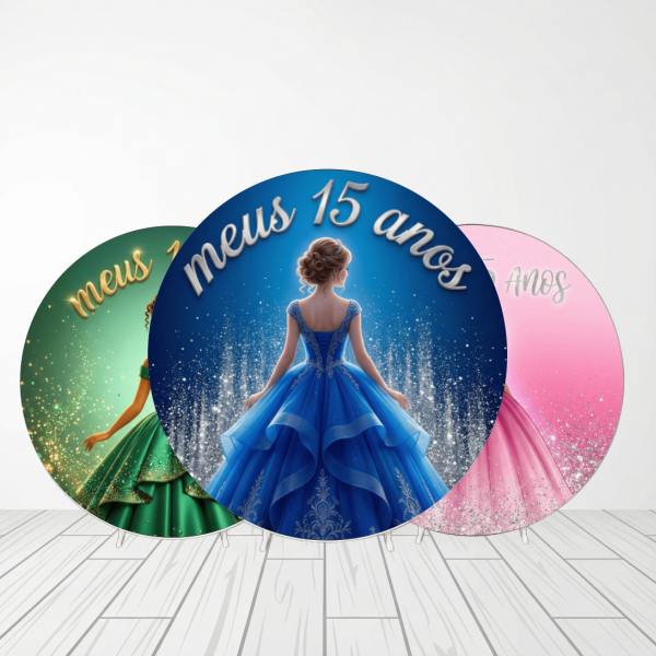 CAPA PAINEL REDONDO MEUS 15 ANOS | TECIDO PREMIUM | VÁRIOS MODELOS. 1.50X1.50CM E 50X50CM