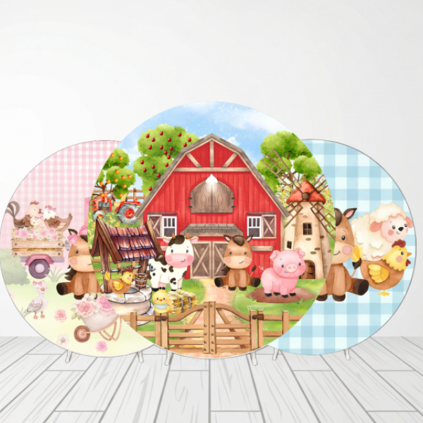 CAPA PAINEL REDONDO FAZENDINHA | TECIDO PREMIUM | VÁRIOS MODELOS - 1.50X1.50M E 50X50CM