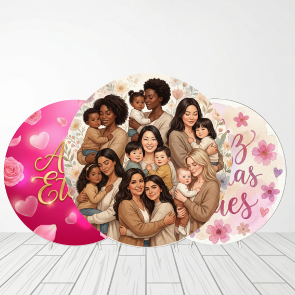 CAPA PAINEL REDONDO DIA DAS MÃES | TECIDO PREMIUM | VÁRIOS MODELOS - 1.50X1.50M E 50X50CM
