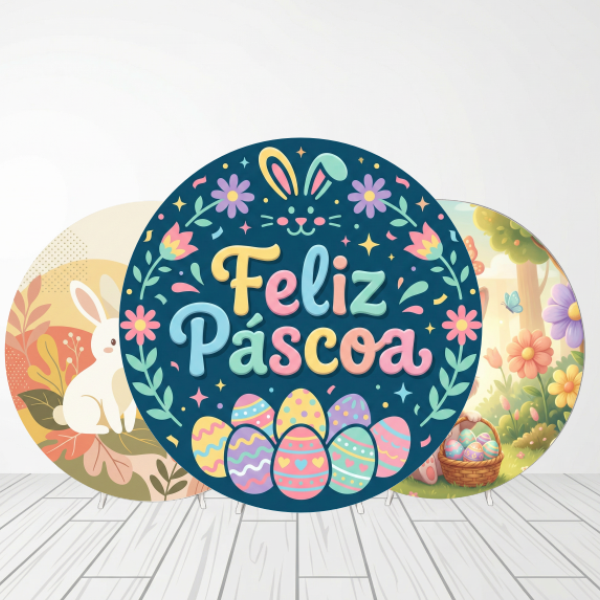 CAPA PAINEL REDONDO PÁSCOA COELHO | TECIDO PREMIUM | VÁRIOS MODELOS - 1.50X1.50M E 50X50CM